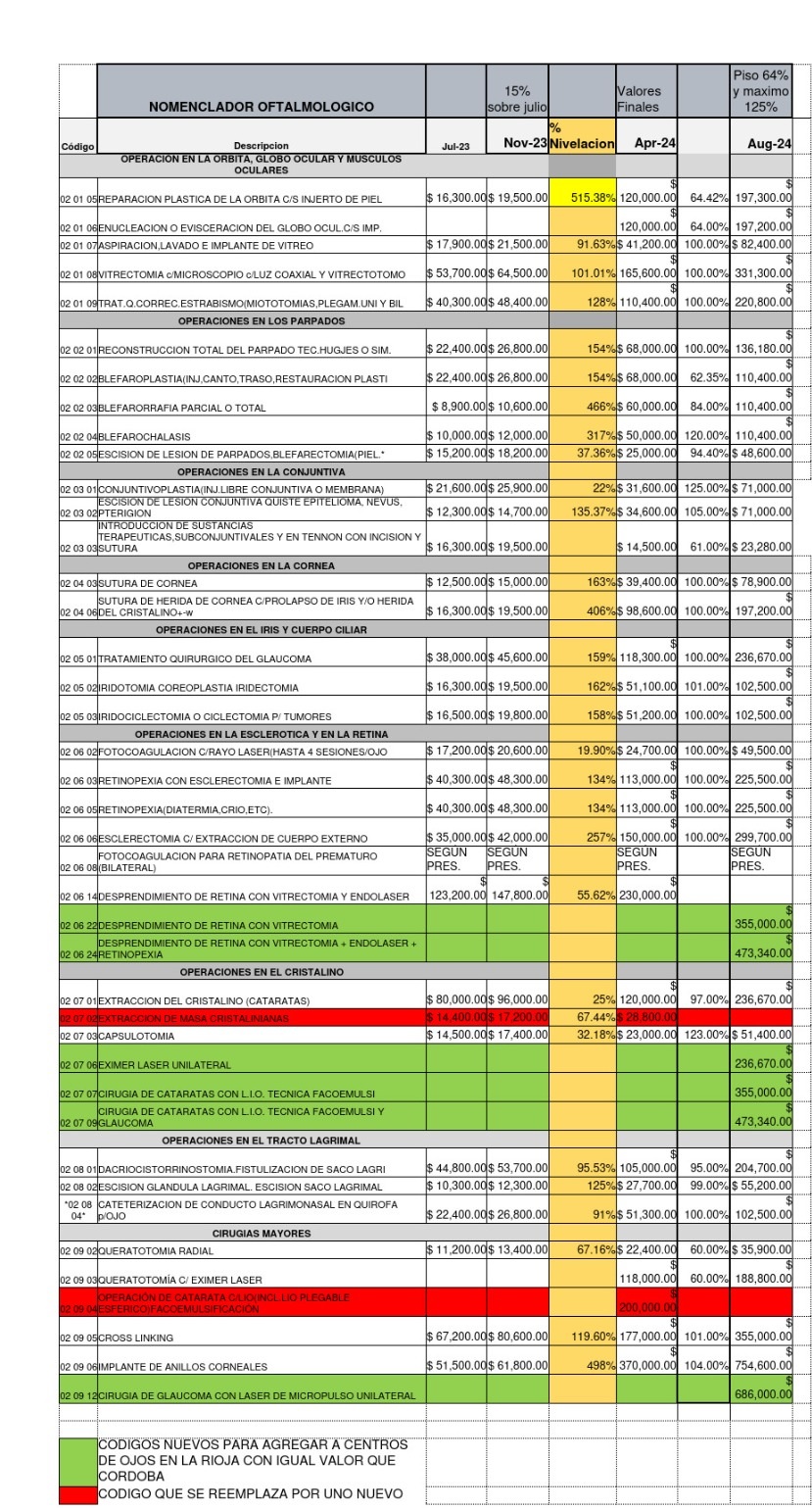 La titular de APOS, Claudia Ortiz, aseguró que los referentes de centros oftalmológicos fueron recibidos en el despacho de la obra social, ocasión en la que se les dio a conocer el aumento que la obra social ofrecía, nivelado con las demás provincias y tomando como referencia los valores de un centro de alta complejidad como Reyes Giobellina de la provincia de Córdoba.