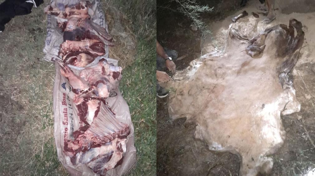 A bordo del rodado se trasladaban dos hombres, quienes llevaban consigo dos bolsas arpilleras con carne de un animal vacuno. Al ser consultados sobre la procedencia del producto, en un principio no pudieron justificarlo, pero luego confesaron haber sustraído el animal en el paraje Los Ralos, Departamento Choya.