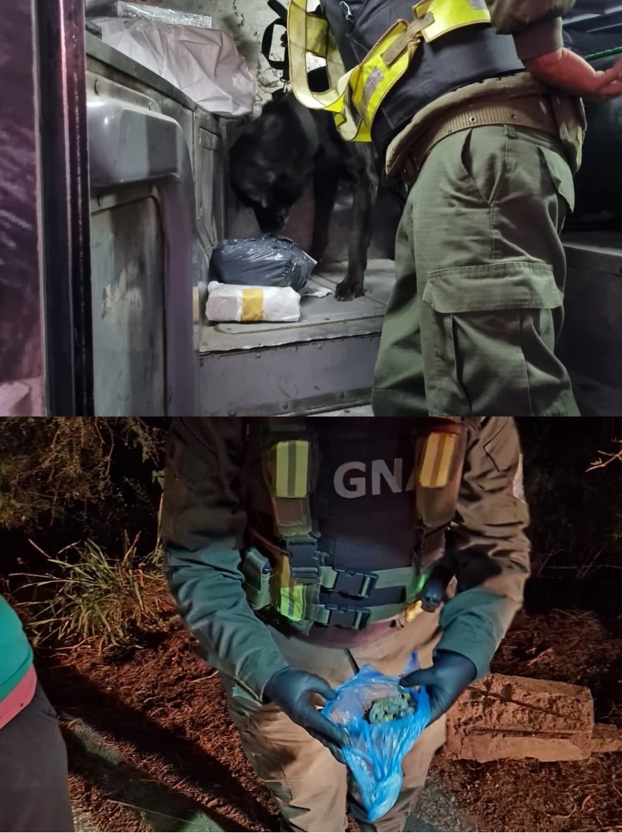 En tanto, en la mañana de este martes, en Ruta Provincial 9 en el acceso Sur de Aimogasta, Gendarmería procedió a controlar un micro de larga distancia que transporta encomiendas, encontrando un bulto con sustancias.