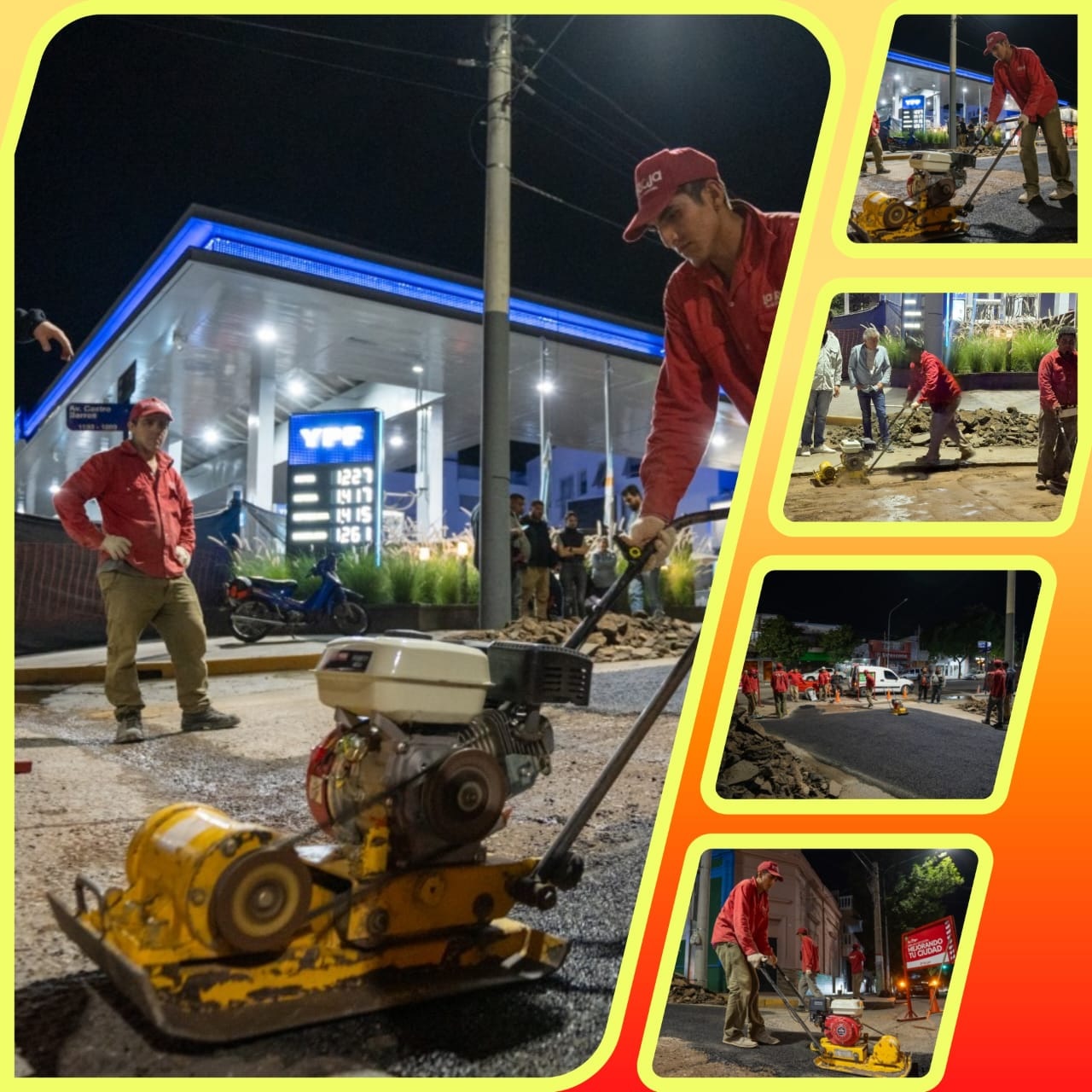 En ese sentido, se están llevando a cabo tareas de bacheo en horario nocturno, en arterias muy transitadas, como en la intersección de Avenida Perón y Castro Barros.