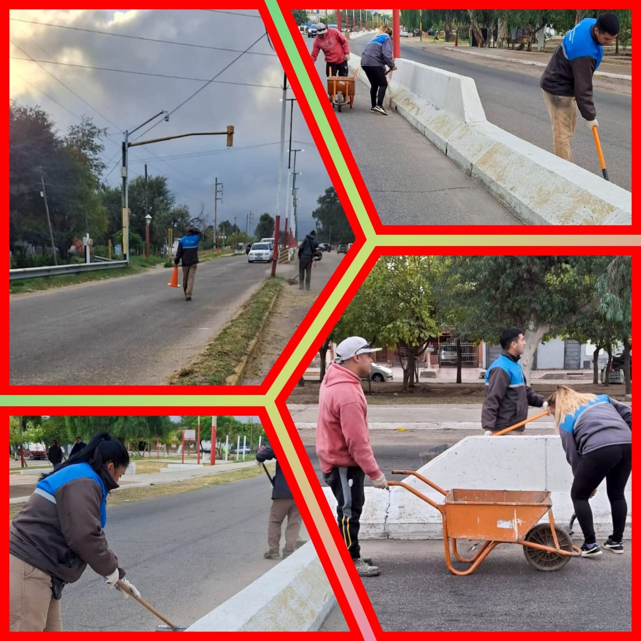 Se encuentran desde la rotonda del Triángulo hasta la Ruta Nacional N° 38. Continúan con una limpieza profunda, retirando gran cantidad de residuos, hojas secas y maleza. Con el objetivo de seguir trabajando por una ciudad más limpia.