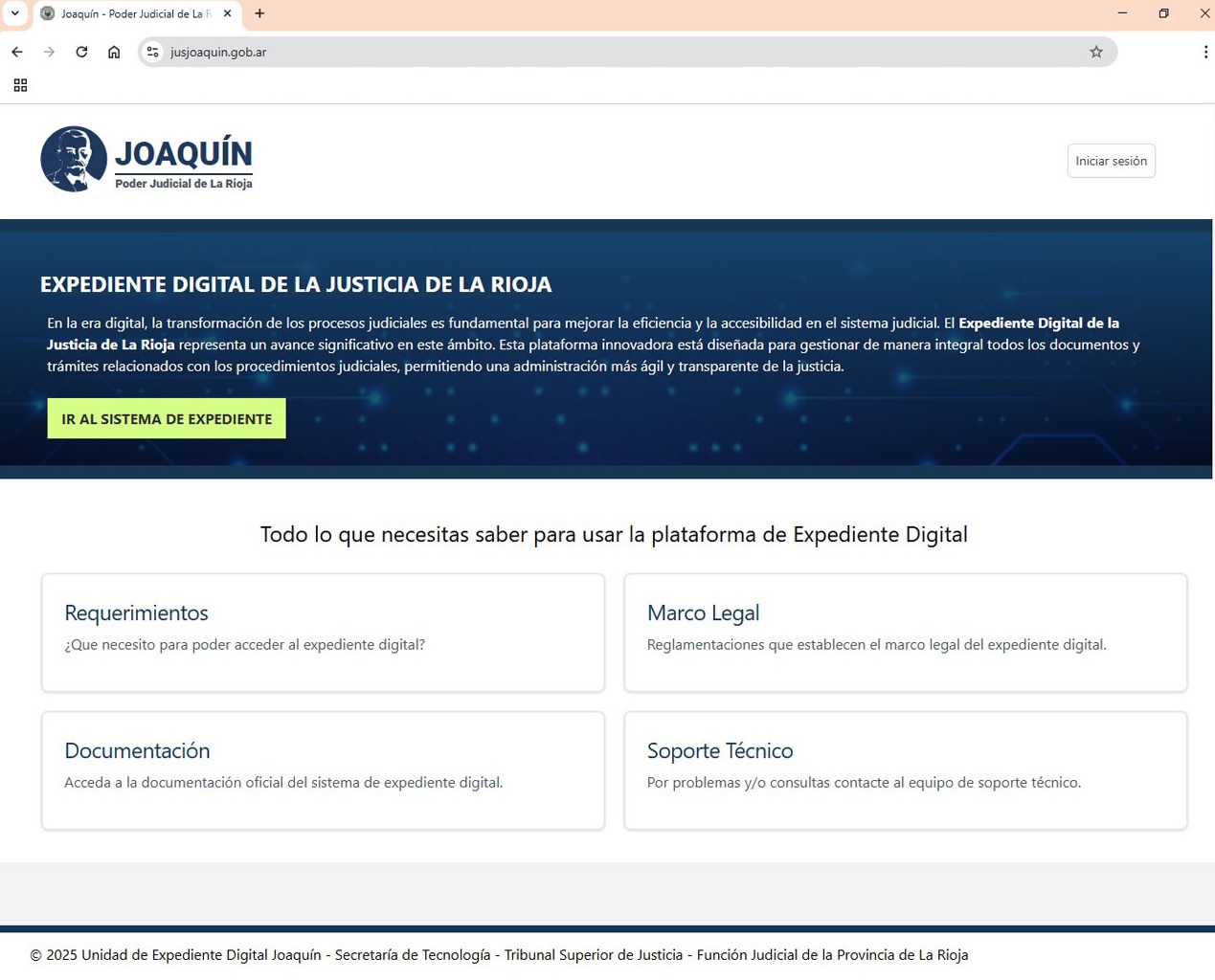 El Tribunal Superior de Justicia de La Rioja a través de la Resolución N° 73/25 dispuso la incorporación del sistema de expediente judicial digital “Joaquín” a partir del 13 de agosto en los cuatro Juzgados de Paz Letrados de la Primera Circunscripción Judicial con sede en Capital.