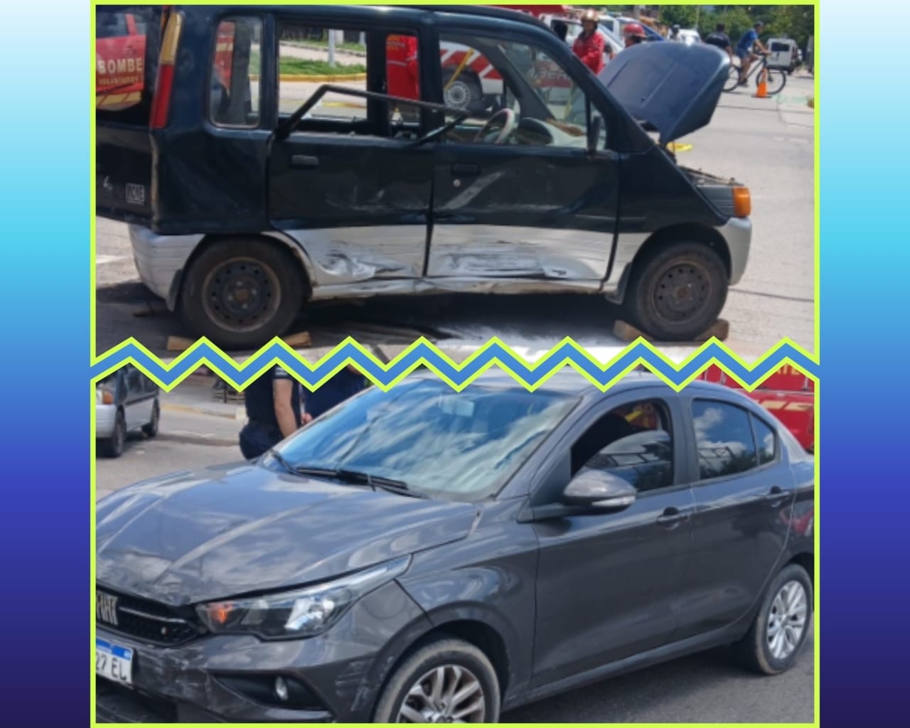 El siniestro vial ocurrió el sábado 17 de enero a las 14:00, cuando un Fiat Cronos gris que circulaba de sur a norte por Av. Primero de Marzo impactó contra un Daihatsu Move verde que avanzaba de oeste a este por Av. Malvinas Argentinas.