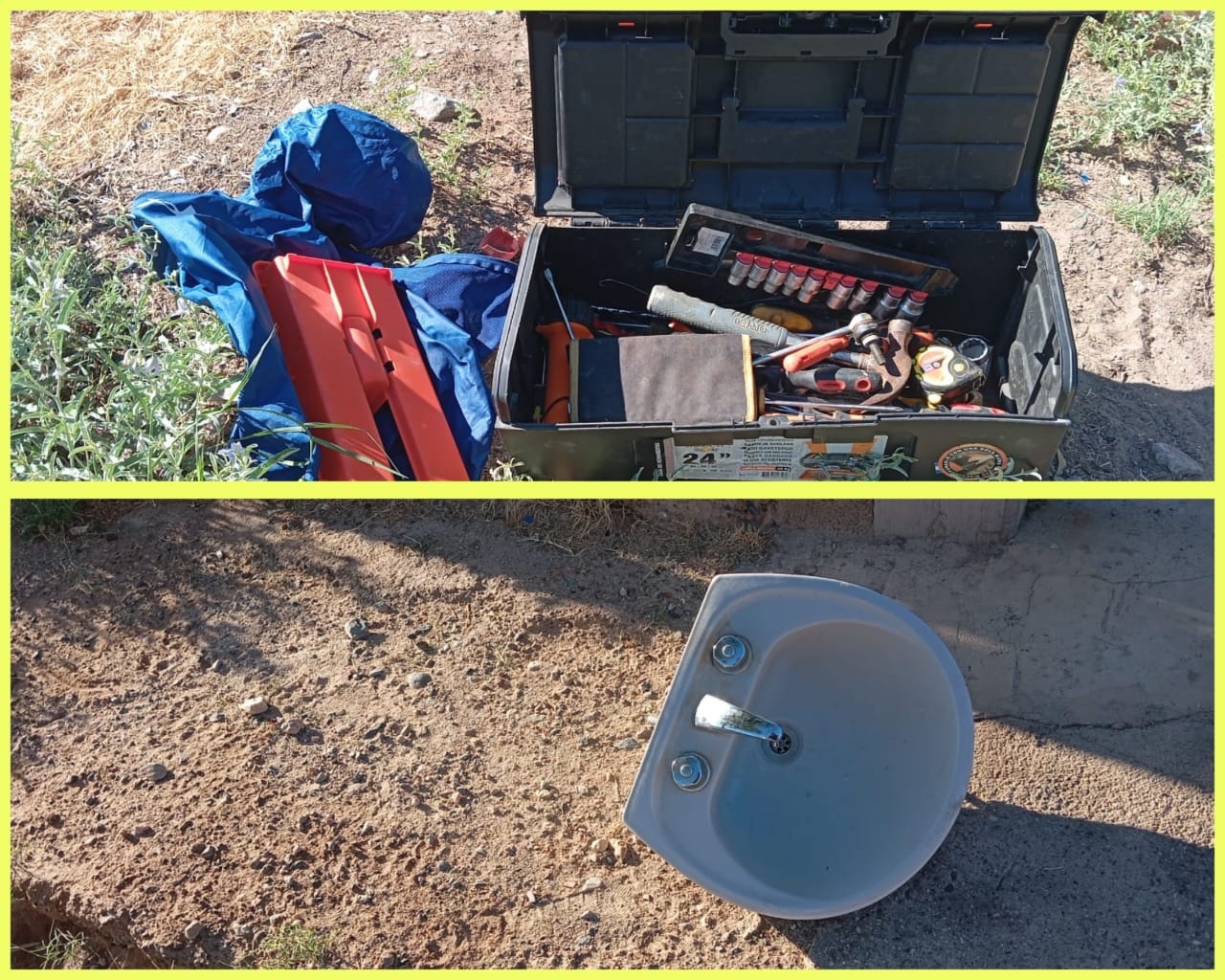 Tras tomar conocimiento de la situación, personal policial inició un rastrillaje por la zona y sectores colindantes, logrando encontrar en estado de abandono en la vía pública el lavamanos, la caja de herramientas y la campera denunciadas.