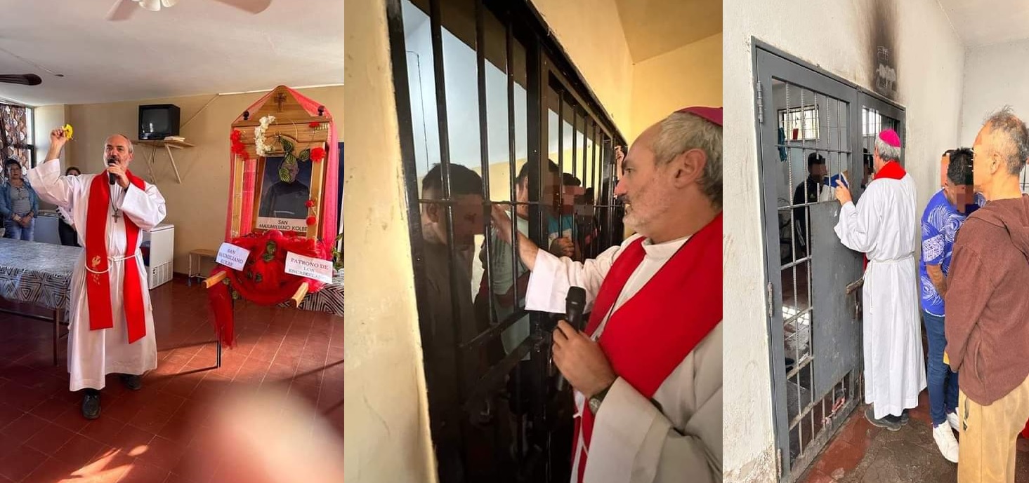 Estos días de preparación espiritual concluyeron este lunes 14 con la visita del Obispo Diocesano, Monseñor Dante Braida, quien acompañado por el Padre Francisco Contamín, presidio la celebración de la Santa Misa y procesión con la imagen de San Maximiliano por los pabellones de la unidad penal; bendiciendo y alentando tanto a internos como al personal Penitenciario, pastoral carcelaria y voluntarios que participaron.