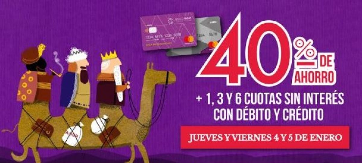 La promoción en tarjetas de crédito y débito de la entidad es jueves 4 y viernes 5 de enero para los rubros indumentaria, calzados, regalaría, juguetería, librería, marroquinería, casa de deportes, celulares, electrónica y bicicletería.