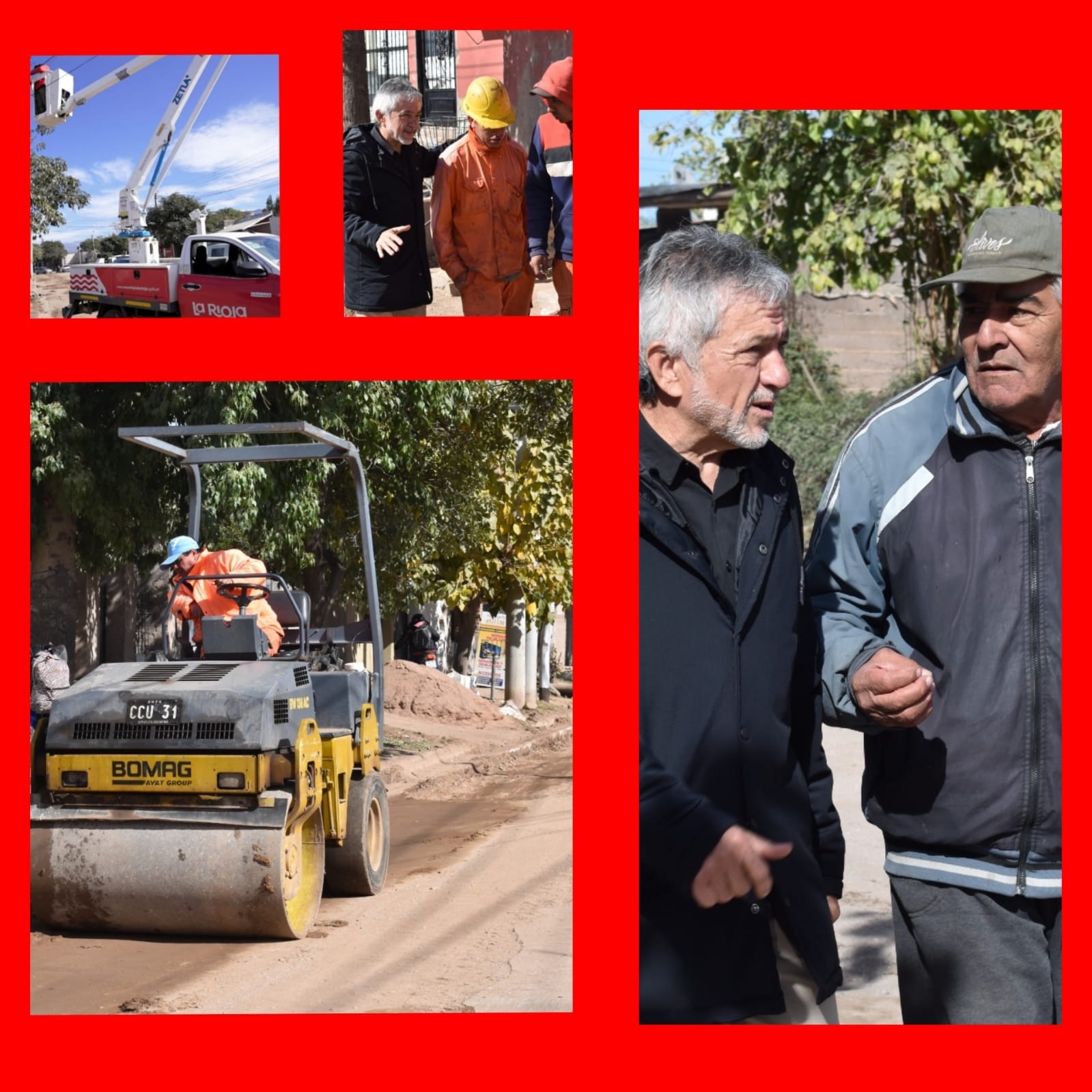 El intendente del Municipio Capital, Armando Molina, recorrió los avances de la obra de asfaltado, que contempla 15 cuadras en total cubiertas, y la puesta de luminarias en el barrio 20 de mayo.