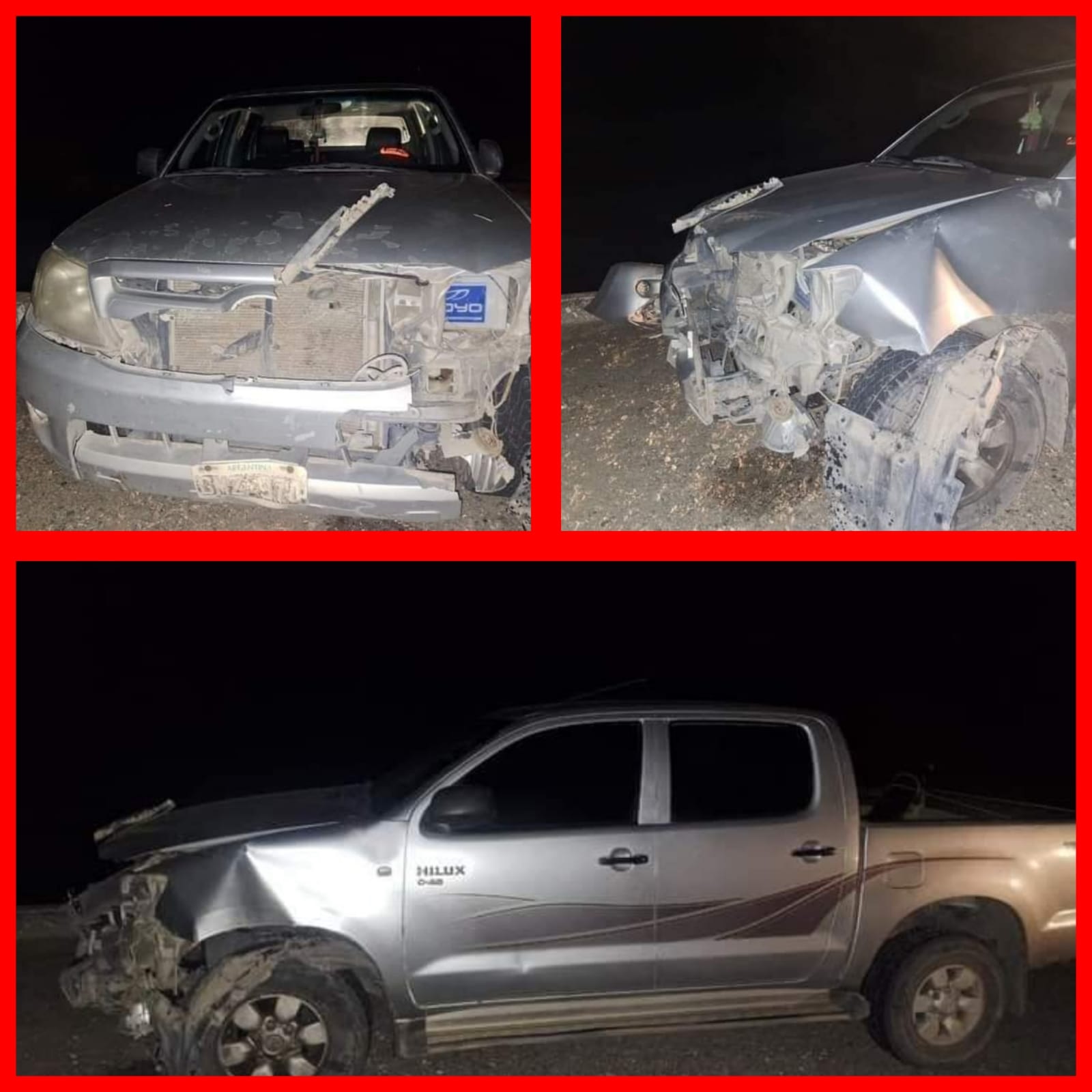 En la noche del viernes aproximadamente a horas 21:50, se registró un accidente de tránsito en ruta Nacional 60 a la altura del km1122. El mismo se trataría de una camioneta marca Toyota modelo Hilux, al mando del ciudadano Carvajal Alan Misael de 24 años de edad, domiciliado en Pampa Blanca Dpto.