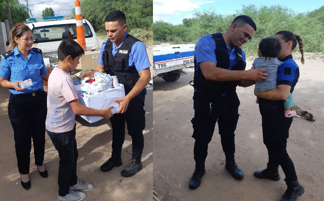 Por ese motivo Personal de Comisaria Chepes, Brigada de Investigaciones, Personal de Guardia Urbana, Personal de Lucha Contra el Narcotráfico, Personal de Unidad Sexta de Control y Seguridad Vial y Cria de la Mujer el Menor y la Familia de la Ciudad de Chepes, reunieron ropa, calzado y alimentos para así ayudar a los menores que hoy están pasando un duro momento. La policía no solo están para resguardar nuestra seguridad, sino también tienen un tremendo corazón solidario e Insto así a la sociedad a colaborar con dicha familia.