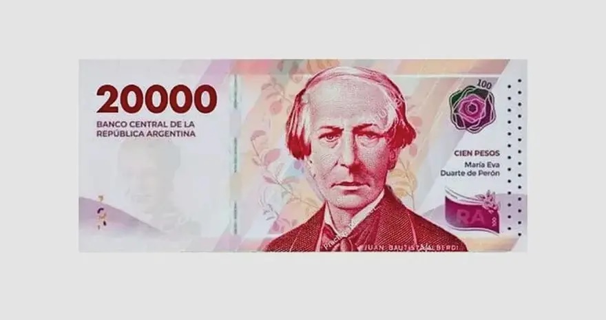 “El protagonista del billete de $20.000 será el prócer tucumano Juan Bautista Alberdi, inspirador de la Constitución Nacional de 1853, cuyo retrato estará en el anverso. Como ilustración central del reverso estará la recreación de la casa natal de abogado, diplomático, economista, escritor, filósofo, periodista y político”, anunciaron desde la autoridad monetaria.
