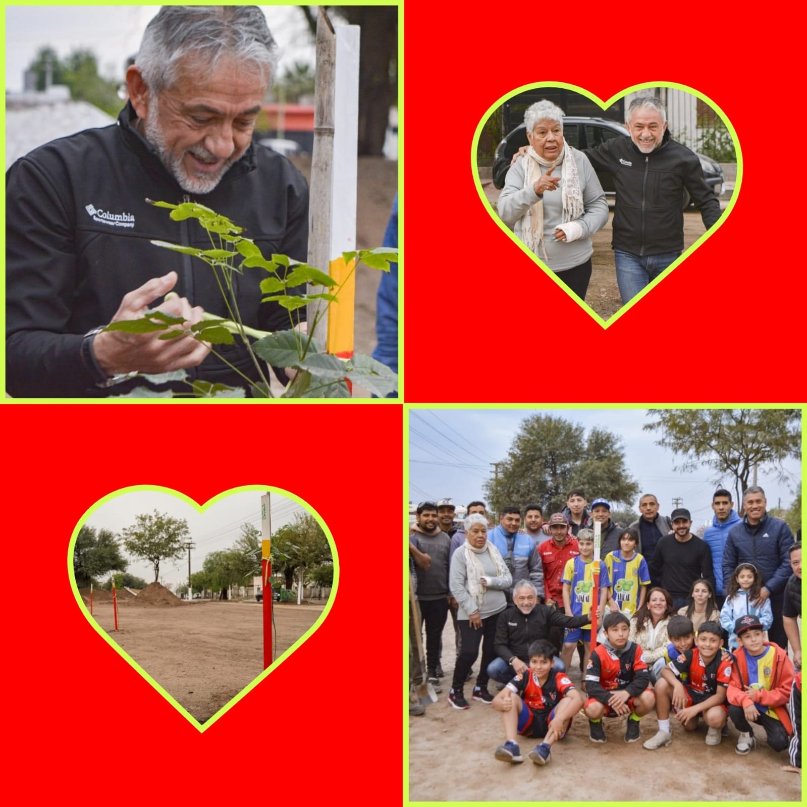 Alumnos y alumnas de las Escuelas de Fútbol de Andino y Defensores de La Boca encabezaron la plantación de ejemplares de lapachos amarillos y jacarandás en la calle Río Turbio, en la esquina con Av. Los Caudillos.
