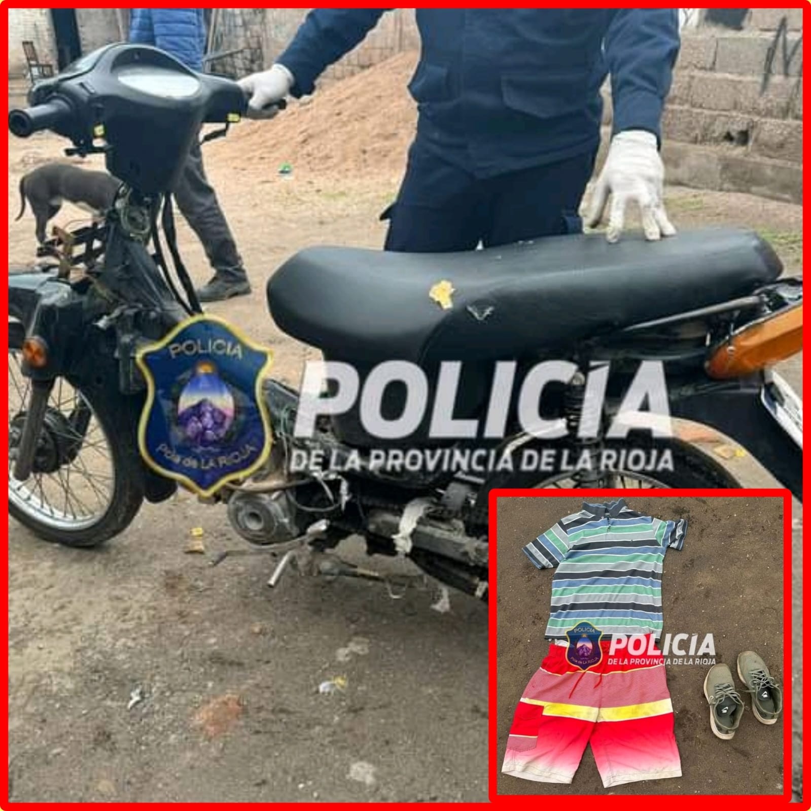En base a una denuncia radicada por una mujer de apellido CEJAS, mayor de edad. Arrojando el procedimiento RESULTADO POSITIVO, en cuento al secuestro de prendas de vestir y una motocicleta 110 c.c., elementos que se habrían utilizado para cometer el hecho, como así también la demora de un hombre de apellido FIORAMONTI (28), el cual fue trasladado a dependencia policial para ser notificado de las actuaciones de rigor en su contra.