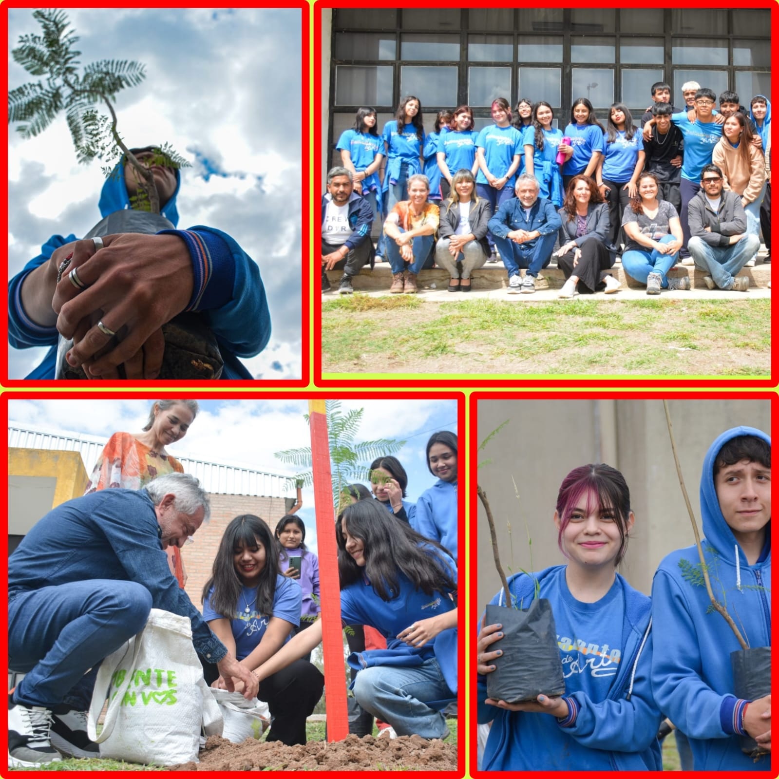 ALUMNOS Y ALUMNAS DEL POLIVALENTE DE ARTE, JUNTO AL INTENDENTE ARMANDO MOLINA, PLANTARON EL ÁRBOL N° 2000
