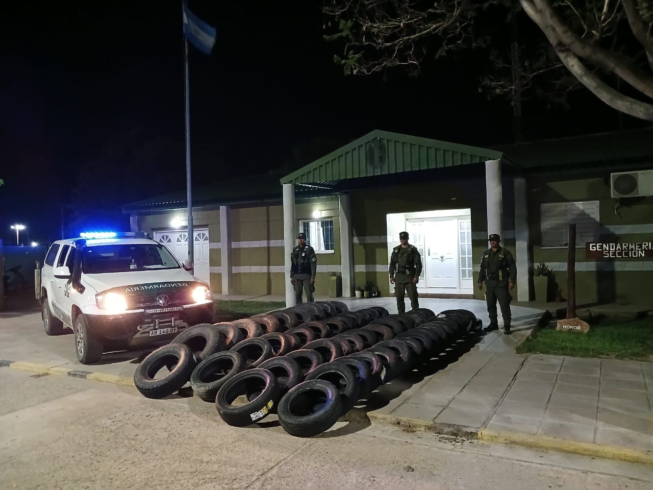GENDARMERIA EN UN OPERATIVO SECUESTRO EN LA LOCALIDAD DE CHEPES, UNA IMPORTANTE CANTIDAD DE CUBIERTAS QUE ERAN TRANSPORTADAS DE CONTRABANDO