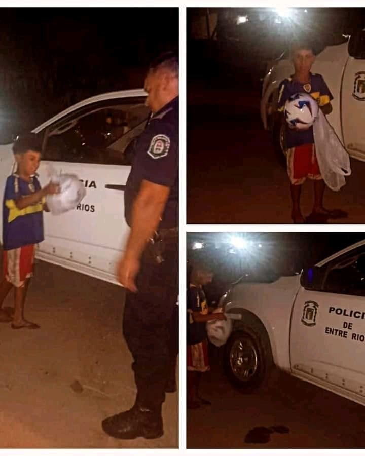 ðŸ‘®â™‚ï¸ Esto conmovió a los policías que decidieron ir y comprar una verdadera pelota de fútbol y regalarle a ese grupo de niño para que jueguen al fútbol con la verdadera pelota número 5, la alegría en los rostros de los niños emocionaron hasta las lagrimas a vecinos de la zona que observaron esta acción , felicitaciones por el gesto de los efectivos de la policía de Entre Ríos.