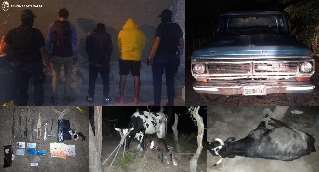 Arrestan a tres personas, secuestran una camioneta y recuperan animales vacunos en Pomán
