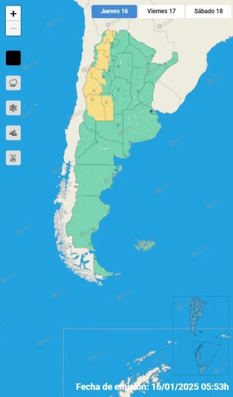 El Servicio Meteorológico Nacional (SMN), a través de su Sistema de Alerta Temprana, emitió una serie de advertencias para este jueves 16 de enero por tormentas de variada intensidad en distintos puntos del país.