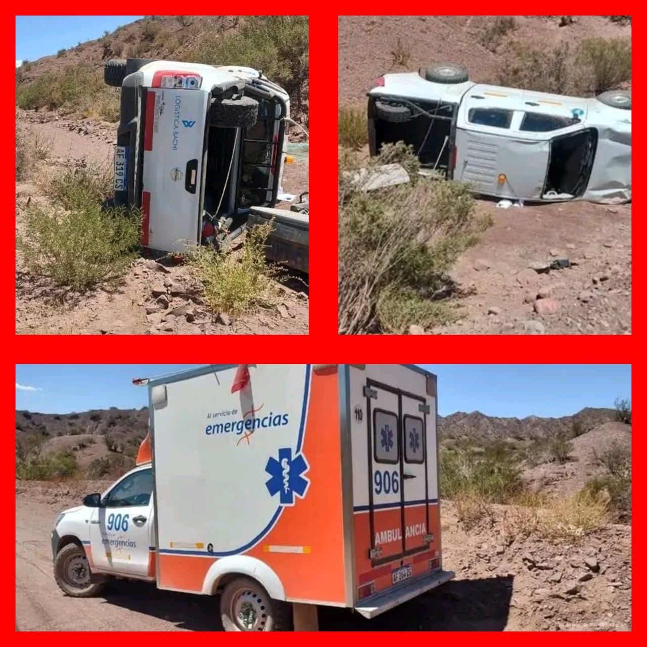 Se registro un vuelco a 18 kilómetros de Guandacol por el camino minero, donde una Camioneta marca Nissan, modelo Frontier, de color blanca, dominio AF-319CS, perteneciente a Logística Bachi - Empresa Filos del Sol, Proyecto José María (Batidero).-