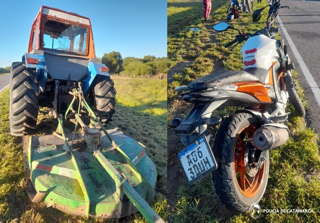 Kevin Exequiel Corbalán (25), circulaba en una motocicleta Honda Twister 250 cc., dominio A063DUH, y por causas que se investigan colisionó con un tractor, conducido por Julio Bazán (63).