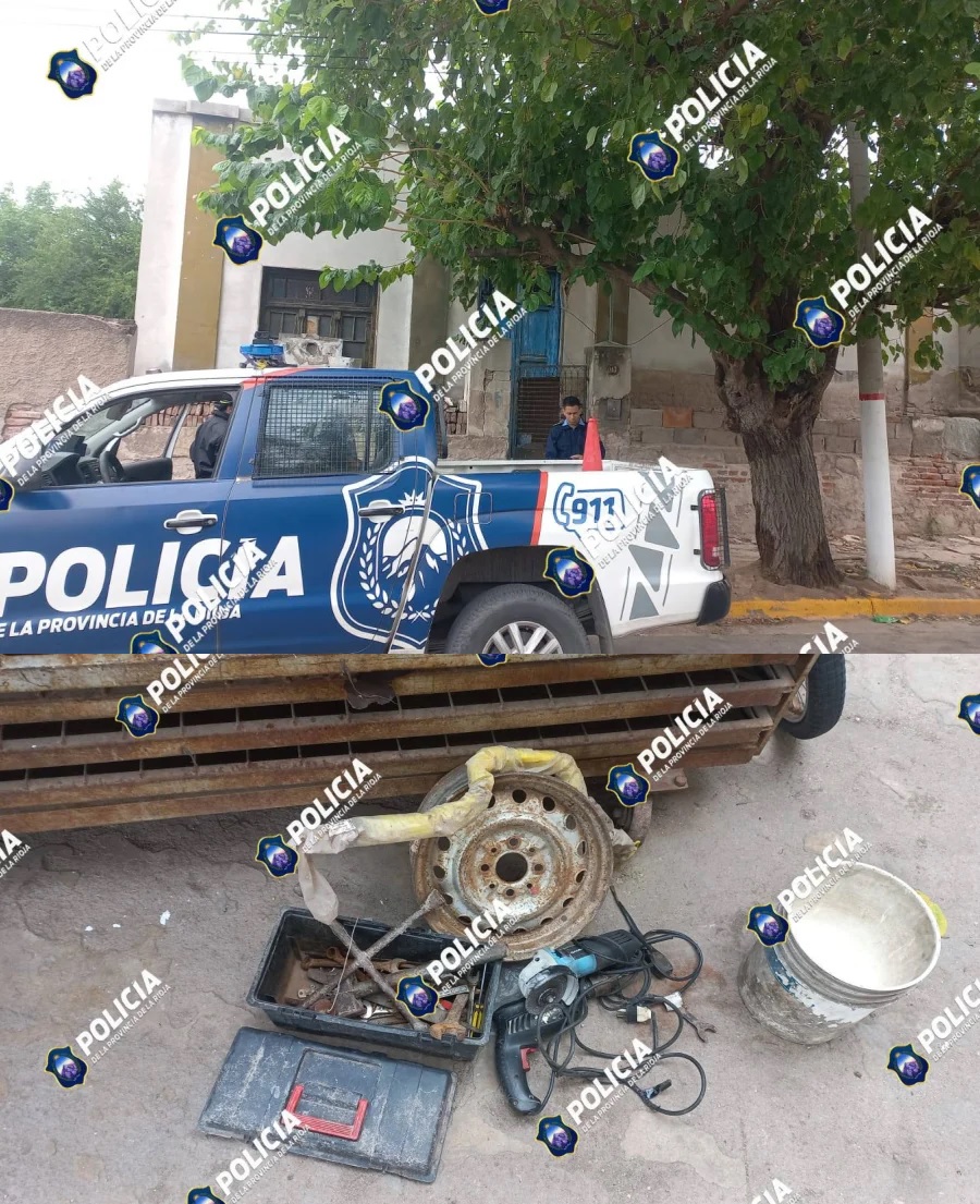 En el hecho intervino la oficina de sumarios penales de la comisaria primera, que tras un allanamiento secuestró las siguients cosas: Una motocicleta 125cc, Una caja con herramientas, Una amoladora, Un taladro, Una llanta Rod. 13, Un ventilador de pie, Una pistola de aire comprimido, Un televisor y Una batería de 12v.