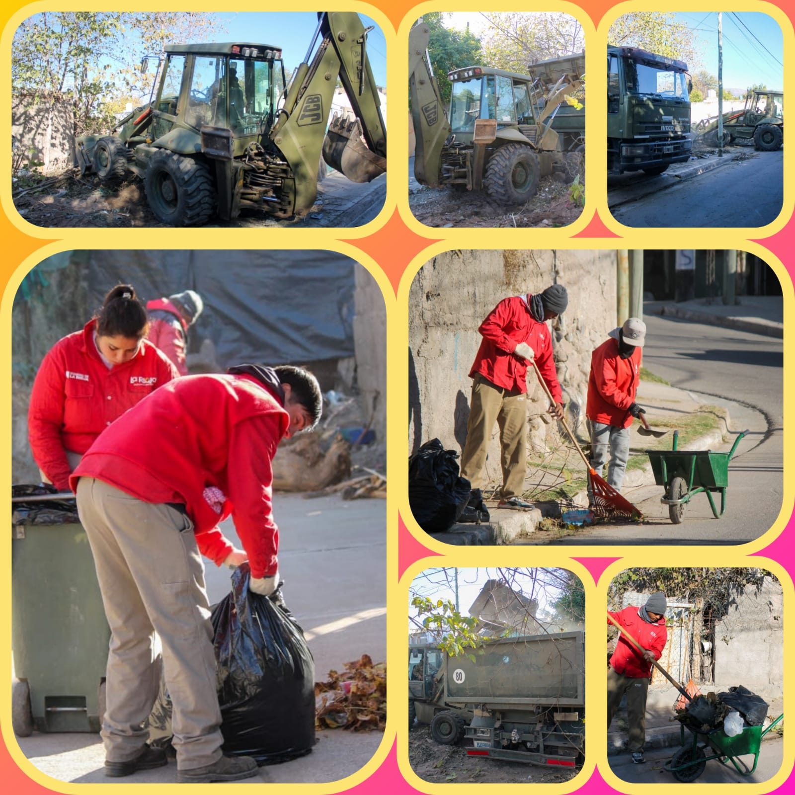 Durante la presente semana, cuadrillas municipales del CePaR Oeste llevaron adelante un operativo integral de saneamiento ambiental en el barrio Alpes Riojanos, en coordinación con equipos y maquinaria pesada provistos por el Regimiento local.