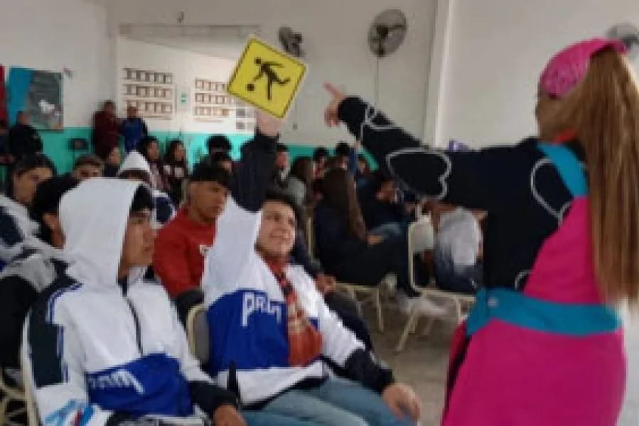La jornada contó con la participación del equipo interdisciplinario de profesionales en seguridad vial “Teatro Vial Pelu y sus Amigos”, quienes realizaron actividades lúdicas y formativas para acercar el aprendizaje a los jóvenes de manera entretenida y cercana.