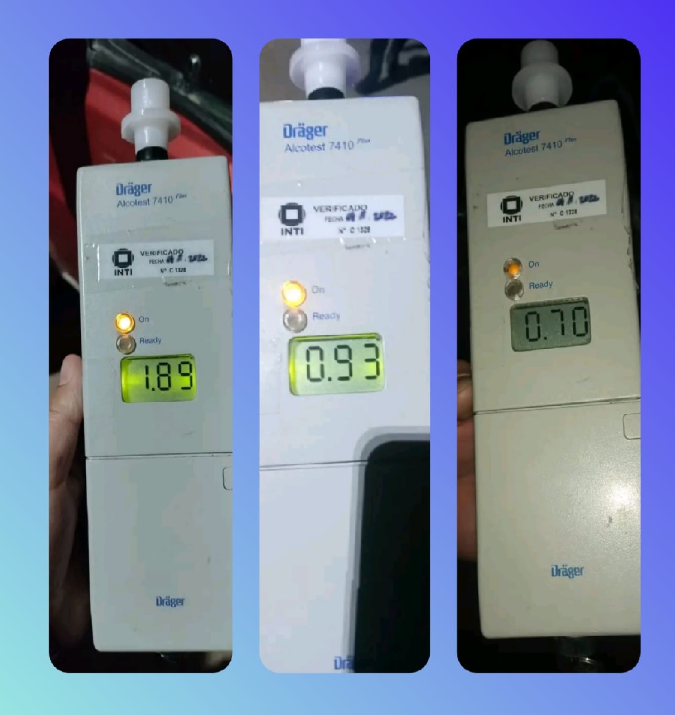 1- Sábado 23:50 hs test de alcohólemia a un masculino de 43 años de edad con domicilio en la ciudad de Chepes, se conducía en una camioneta con una graduación alcohólica de (+1.89 G/L).