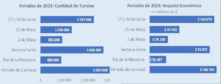 Precisamente, ese movimiento de turistas se tradujo en una fuerte inyección para el sector hotelero y gastronómico, que según datos de la Confederación Argentina de la Mediana Empresa (CAME), alcanzó los $106.197 millones.