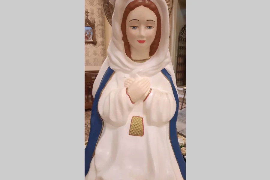 Roxana Martínez contó que robaron un rosario de nácar de la Inmaculada Madre del Divino Corazón Eucarístico de Jesús, que llegó desde Salta.