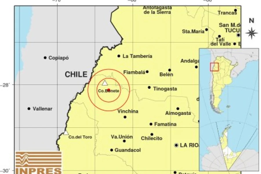 El organismo nacional con sede en San Juan detalló que el fenómeno ocurrió exactamente a las 3.26, a 82 km al noroeste de la localidad de Vinchina y 226 km al noroeste de la capital provincial.