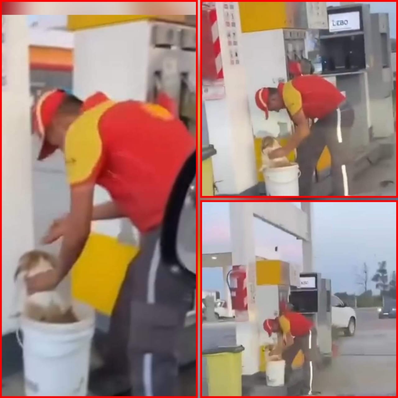 EJEMPLO: Empleado de estación de servicio lo alivió de lo más de 40° c de calor al perrito