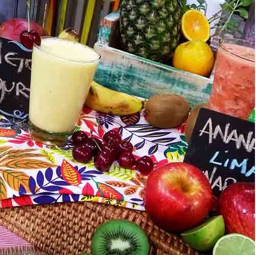 Para los licuados, licuar los ingredientes y servir con hielo.