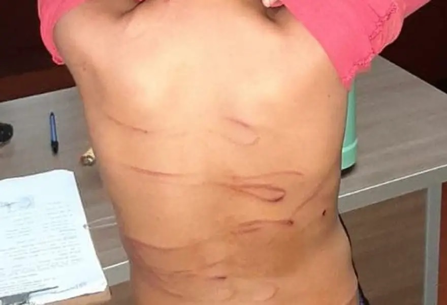 Los médicos de la guardia advirtieron que la causa de las lágrimas del paciente era una herida cortante que presentaba en el glúteo derecho. Los profesionales de la salud trataron de determinar la causa de la lesión, aunque no obtuvieron una respuesta convincente. El niño fue sometido a curaciones y en un examen general, observaron que presentaba cicatrices en la espalda, los brazos y piernas, lesiones de recientes y de antigua data.